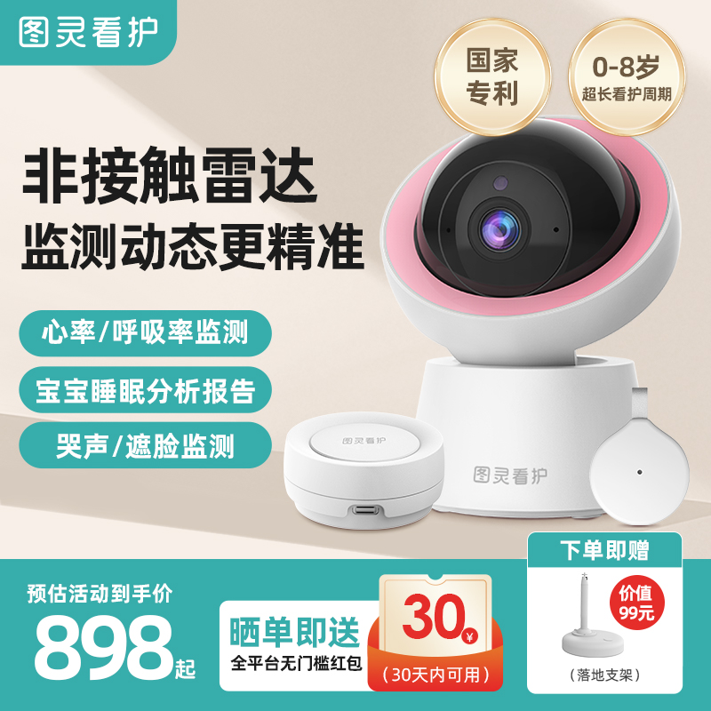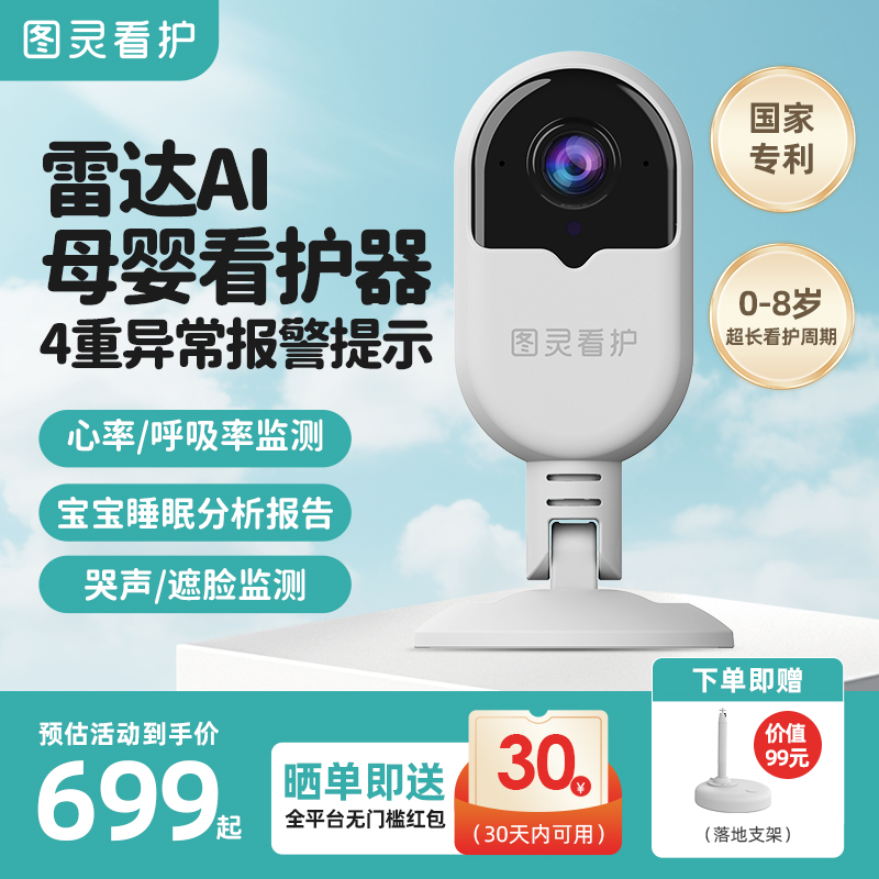 图灵AI看护器婴儿监护器家用宝宝床非接触监视摄像头哭声呼吸睡眠