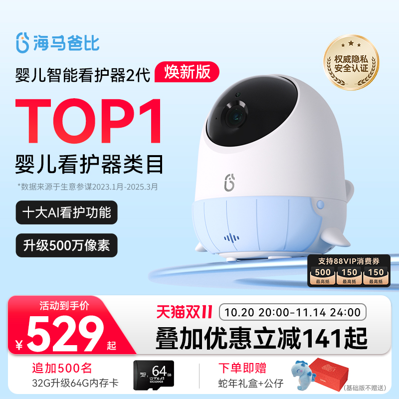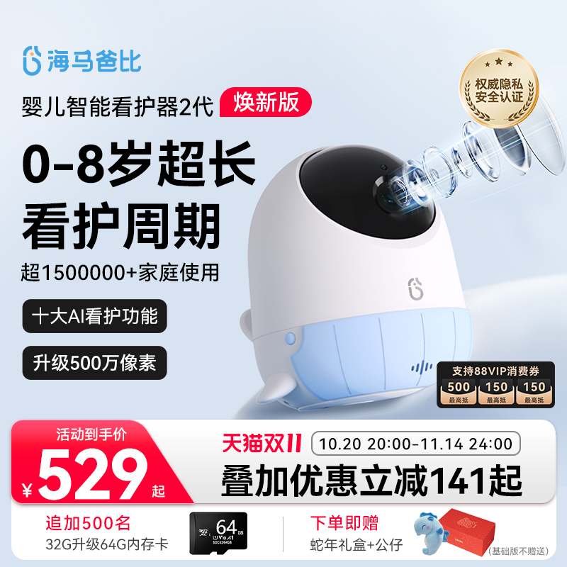 【双11大促】海马爸比二代AI智能婴儿看护器焕新版宝宝监控监护器