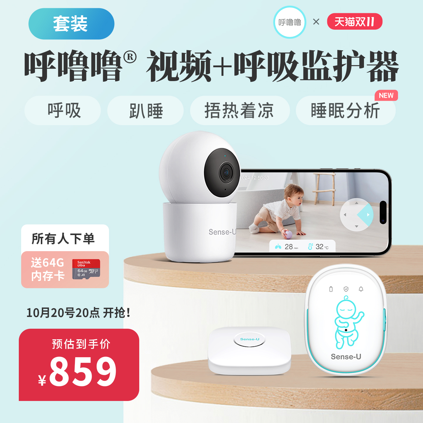 呼噜噜智能婴儿监护器摄像头宝宝呼吸趴睡温度哭声监控看护(套装)