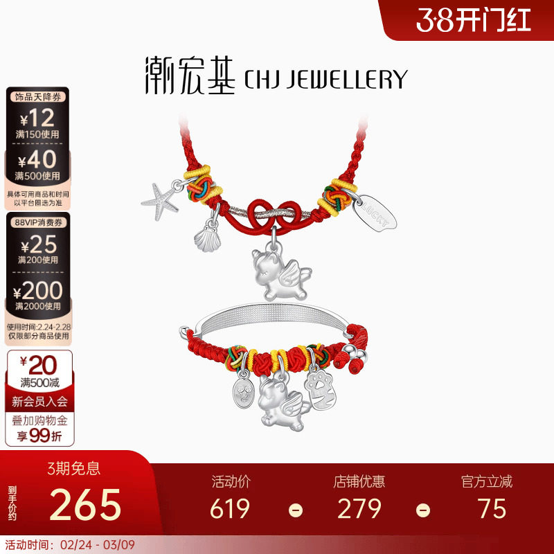 婴儿宝宝金锁长命锁项圈手工编绳儿童银锁红绳黄金吊坠挂绳项链绳