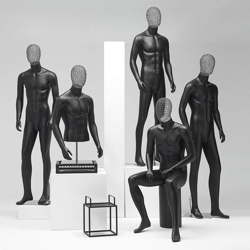 服装道具全身男模特楼空头服装展示衣架人台假人黑色楼空头服装架