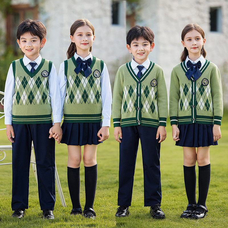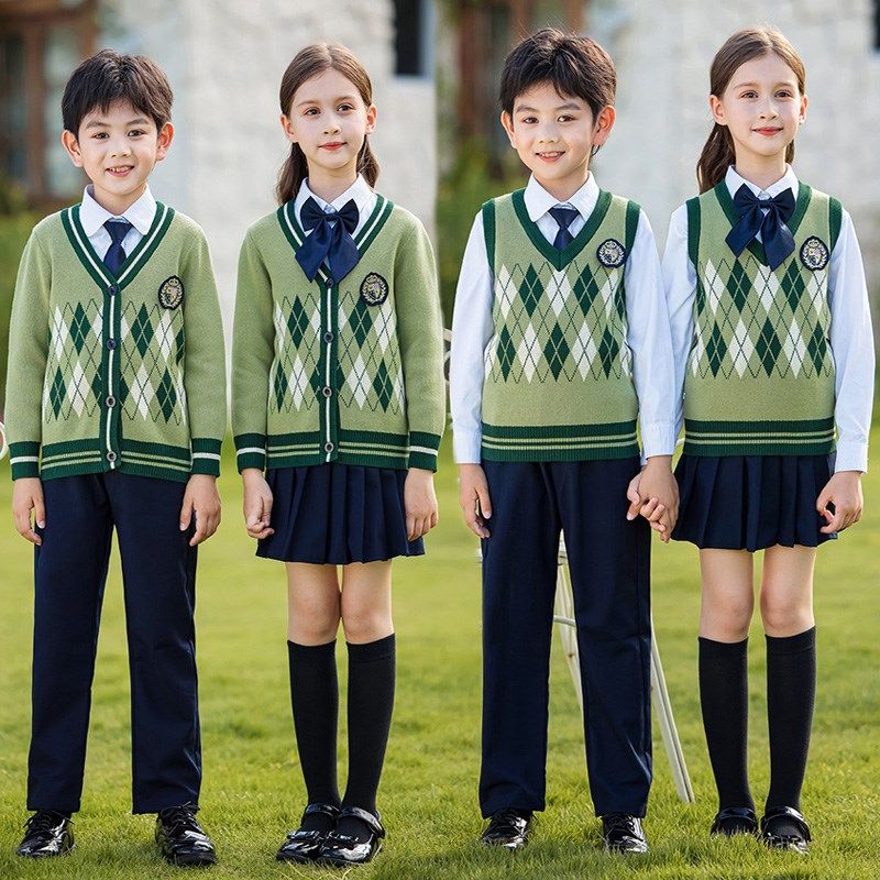 英伦风校服套装小学生毛衣开衫春秋套装一年级儿童班服幼儿园园服