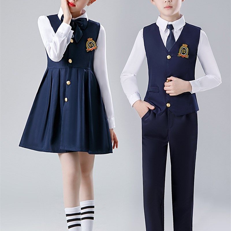 儿童演出服秋冬长袖英伦风马甲男女童班服合唱服朗诵开学校服套装
