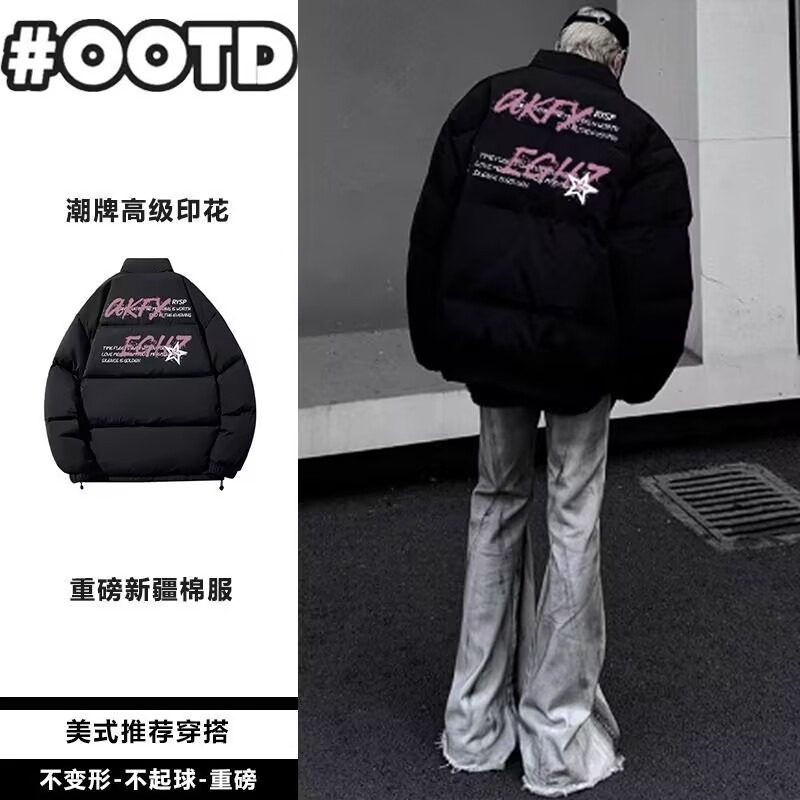 2025新款冬季美式棉衣外套男款潮牌印花加厚宽松百搭休闲保暖棉服