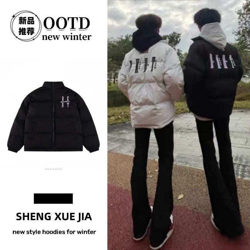 高街网红同款情侣百搭外套字母印花立领棉服男女冬季加厚保暖棉服