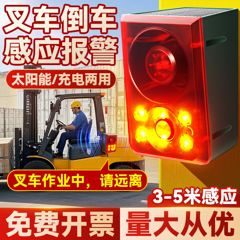 叉车声光报警器挖机倒车盲区感应警报器太阳能红外工地语音提醒器