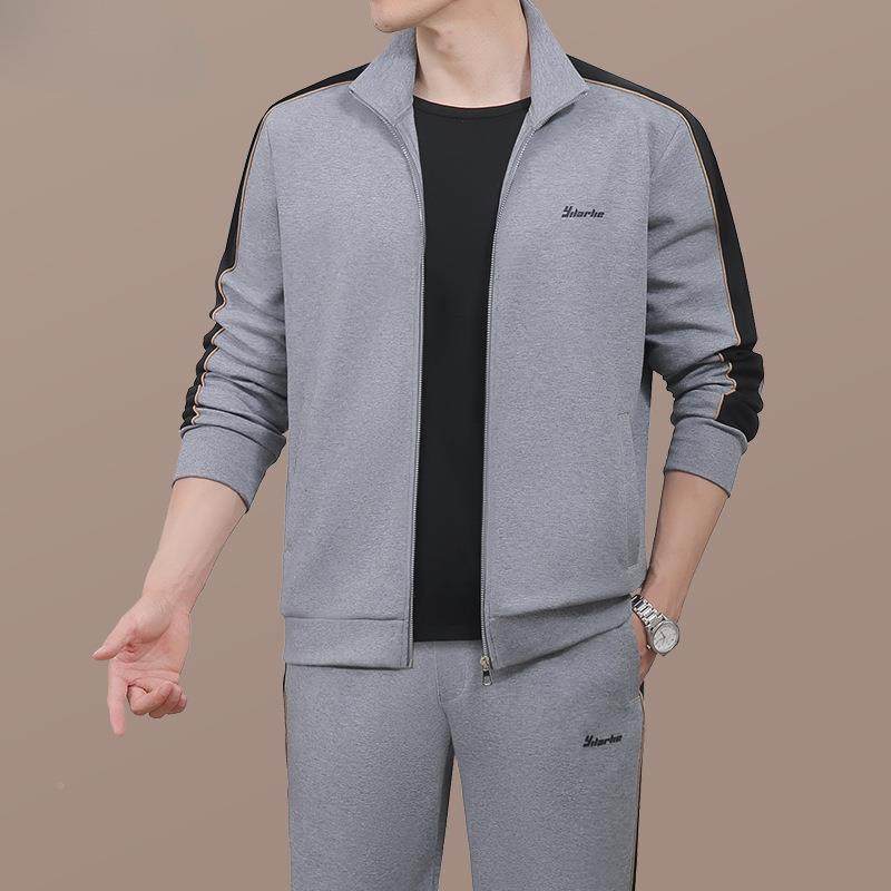 中年男士运动套装春秋装季新款爸爸秋套外老年休中82299205闲套装