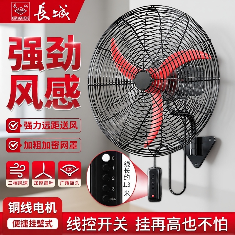 长城工业风扇车间电风扇大功率落地扇摇头挂壁扇强力牛角扇除甲醛