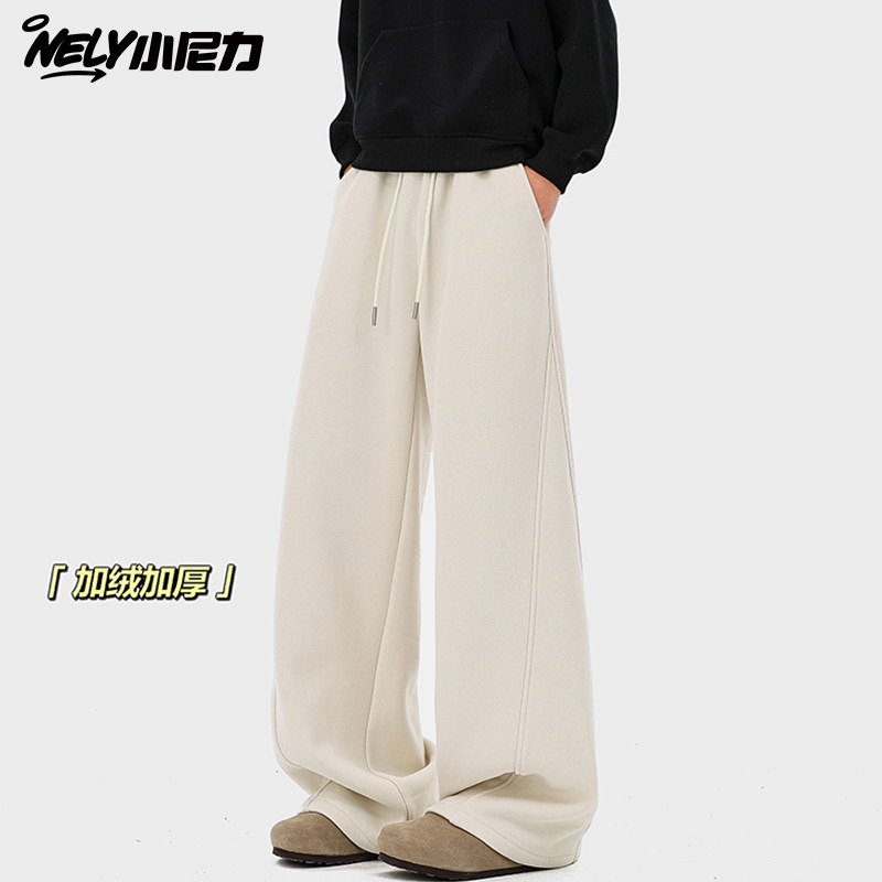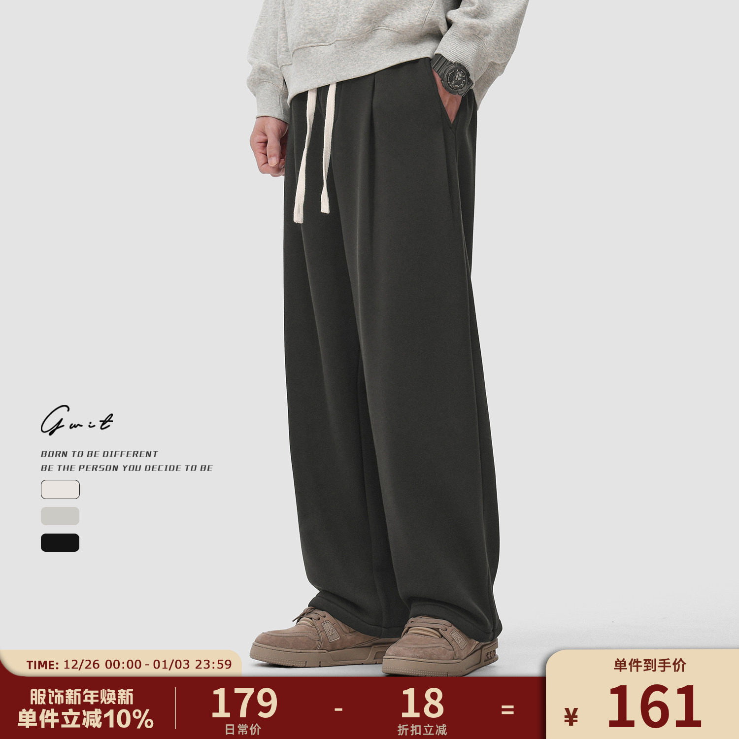 GWIT 三色加绒经典款垂感阔腿卫裤冬季重磅加厚保暖运动休闲裤男