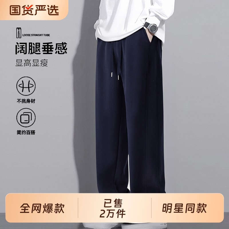 阔腿裤男潮流ins秋冬季卫裤男士大码长裤宽松垂感户外直筒裤高弹