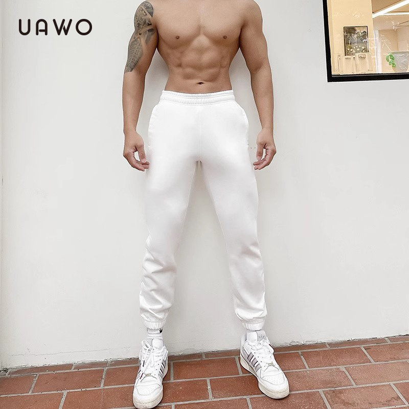 uawo秋冬季卫裤男士宽松运动健身潮流百搭休闲纯色直筒束脚长裤子