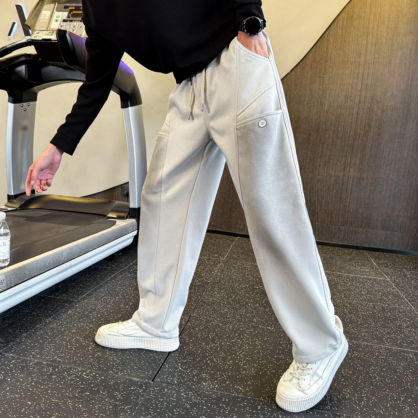 秋冬季灰色卫裤男潮牌直筒宽松垂感加绒加厚长裤百搭运动休闲裤子
