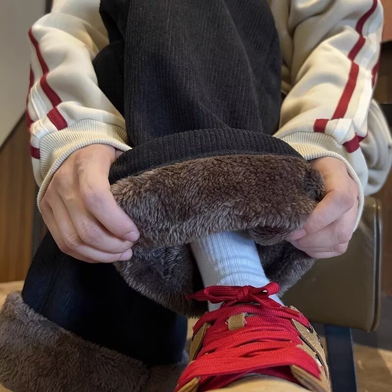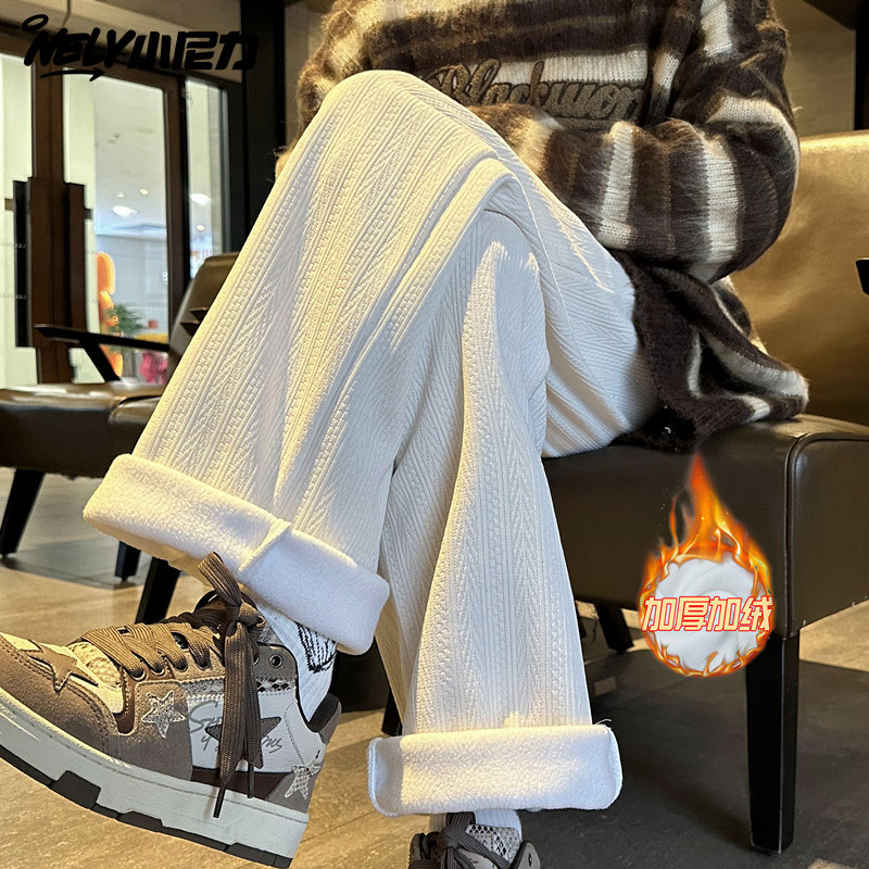 羊羔绒裤子男生冬季大码加肥加绒加厚男士休闲棉裤秋冬款直筒卫裤