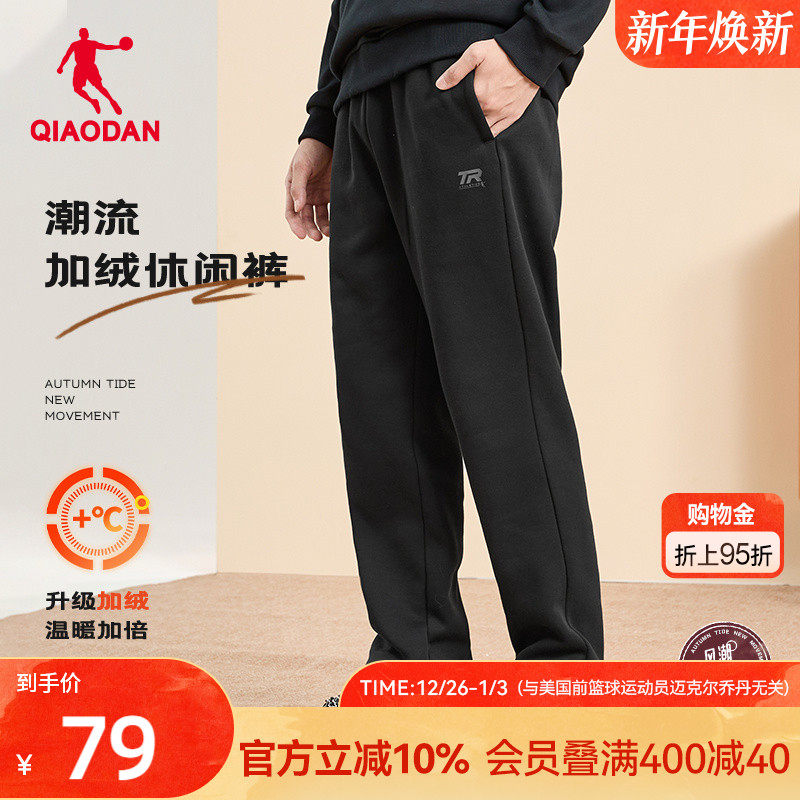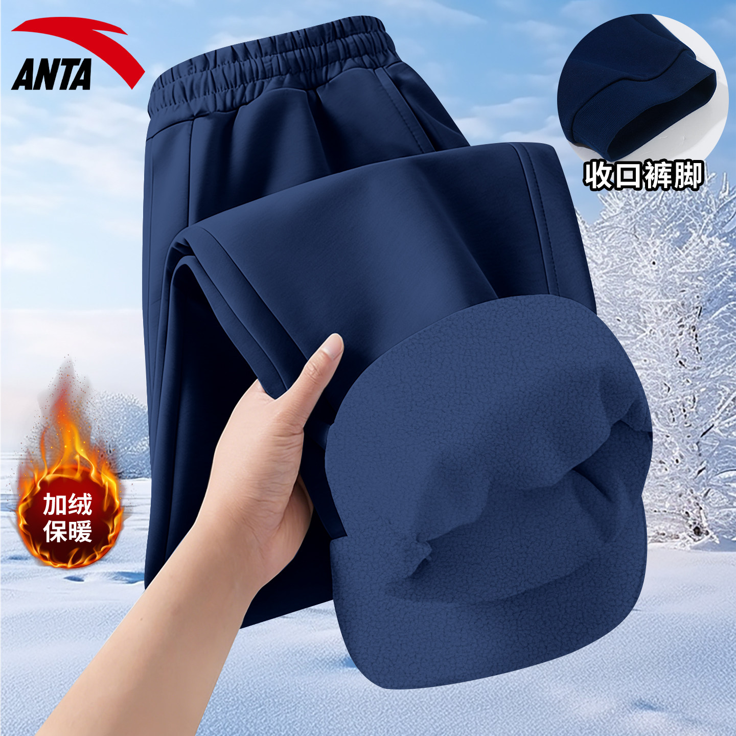 安踏男裤冬季保暖加绒运动裤子休闲直筒卫裤2025新款舒适时尚宽松