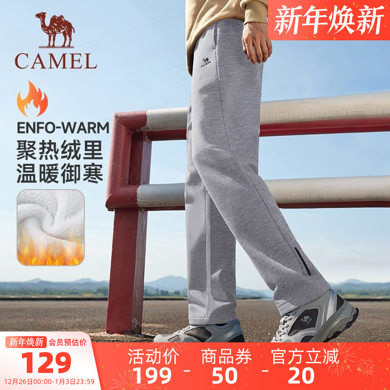 骆驼狂热运动加绒裤男士2025冬季保暖长裤棉感宽松休闲直筒卫裤女