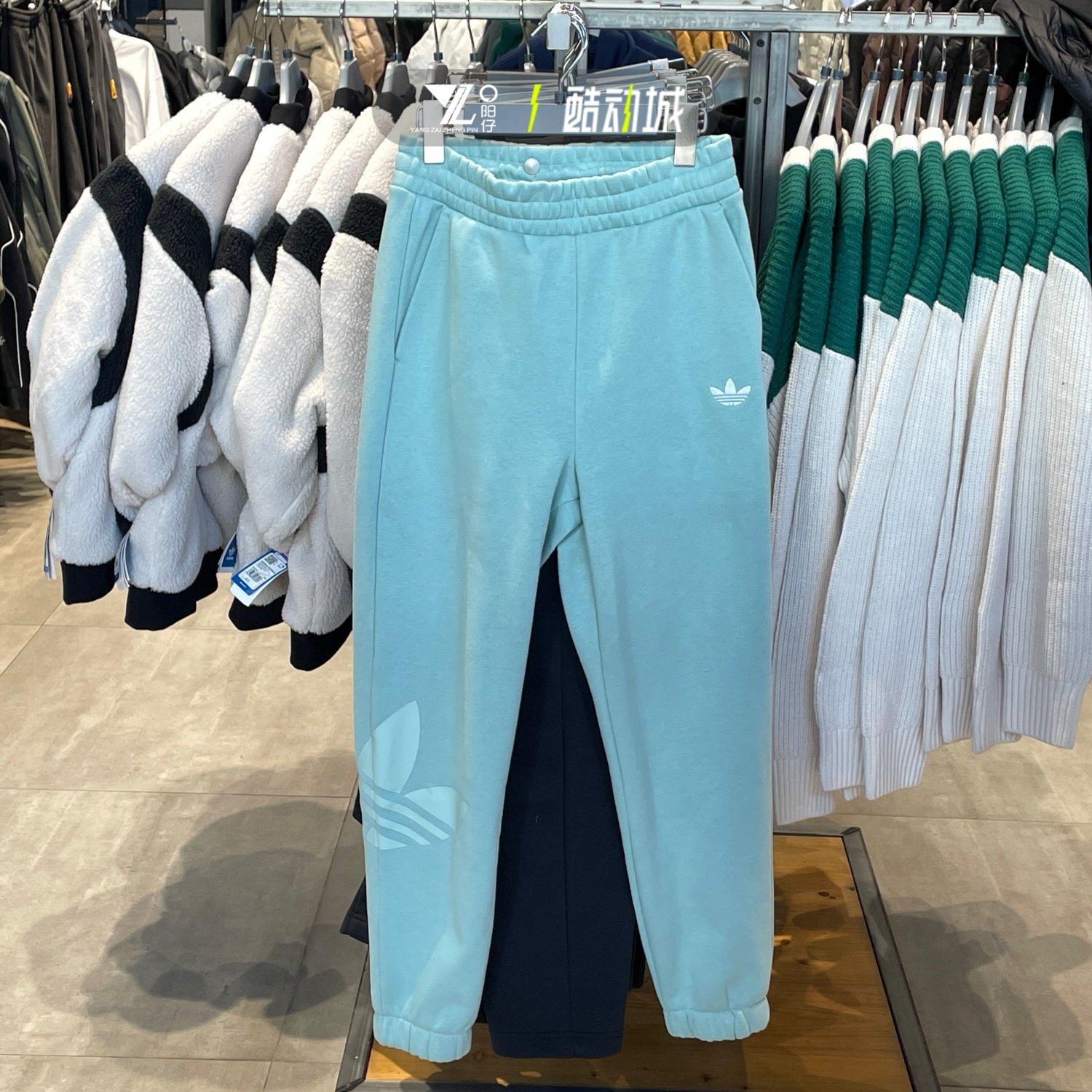 adidas三叶草正品冬季卫裤男女刺绣加绒保暖休闲收口长裤JL8390