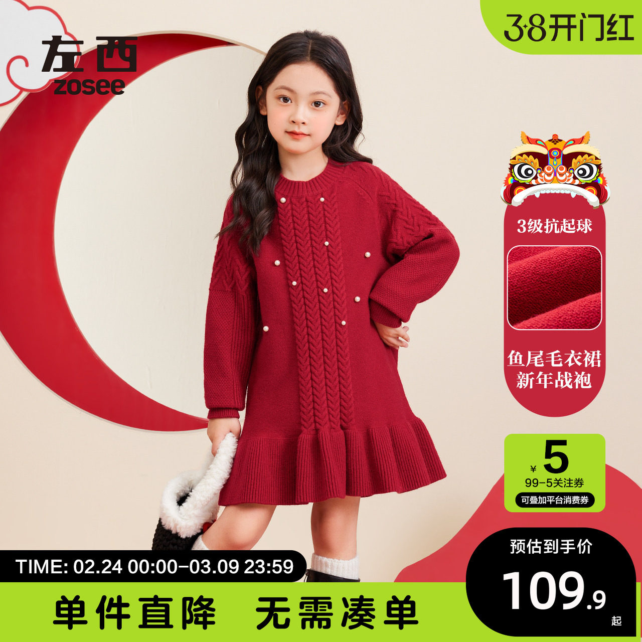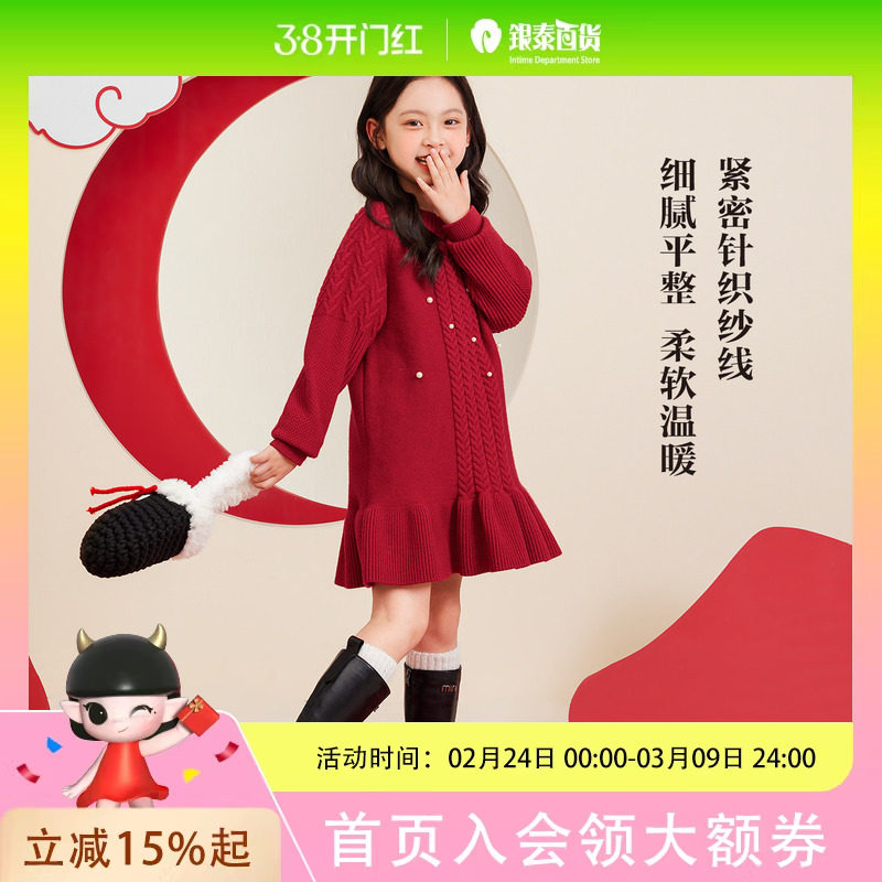 左西女童红色毛衣连衣裙拜年服儿童秋冬2026新款女孩冬季鱼尾裙子