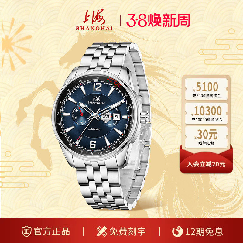 上海手表商务日历自动机械表大表盘防水夜光表官方新款男腕表6027