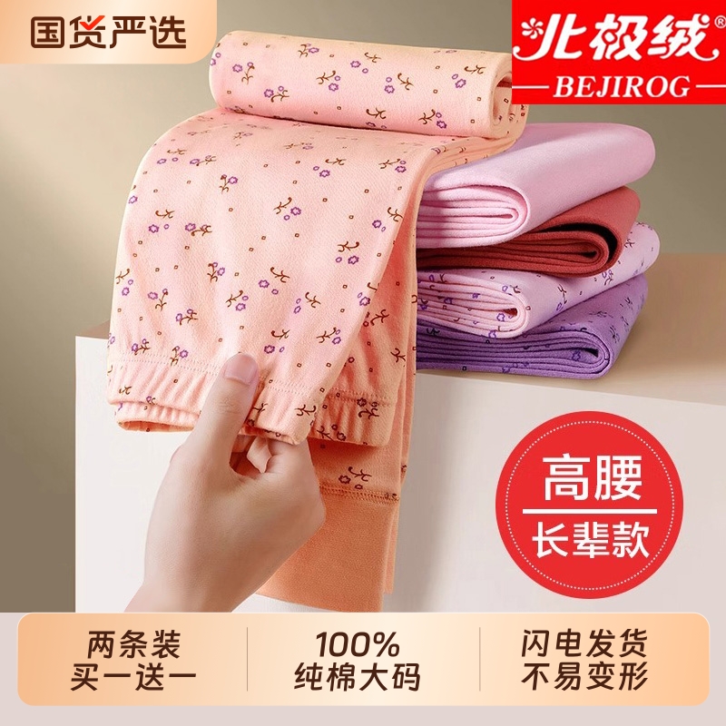 秋裤女士纯棉薄款妈妈中老年高腰全棉毛裤冬季大码保暖线裤花衬裤