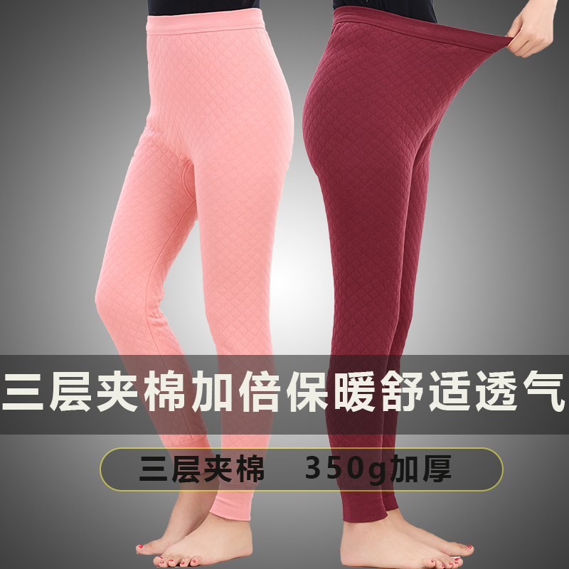 老年人保暖内衣三层夹棉妈妈纯棉大码女秋裤加厚睡裤单件内衣秋冬