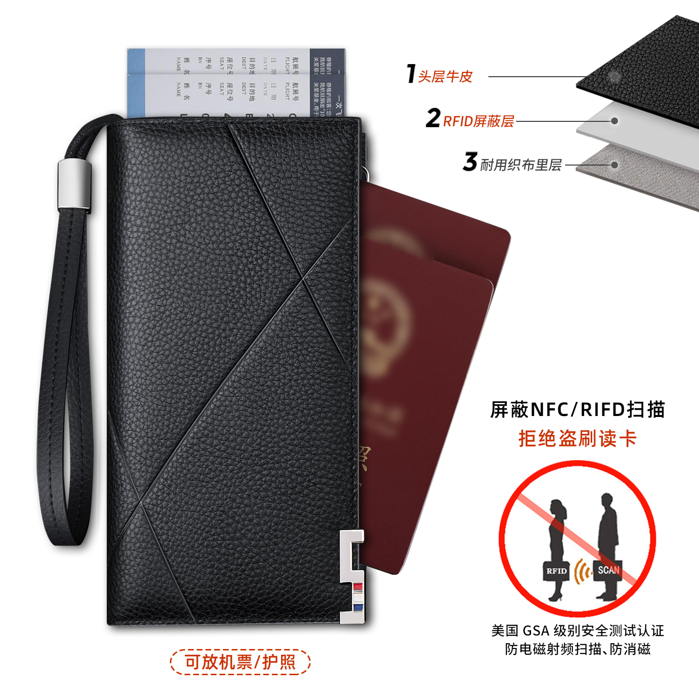 英皇保罗钱包男款真皮新款长款机票护照夹多卡位证件银包手包卡包