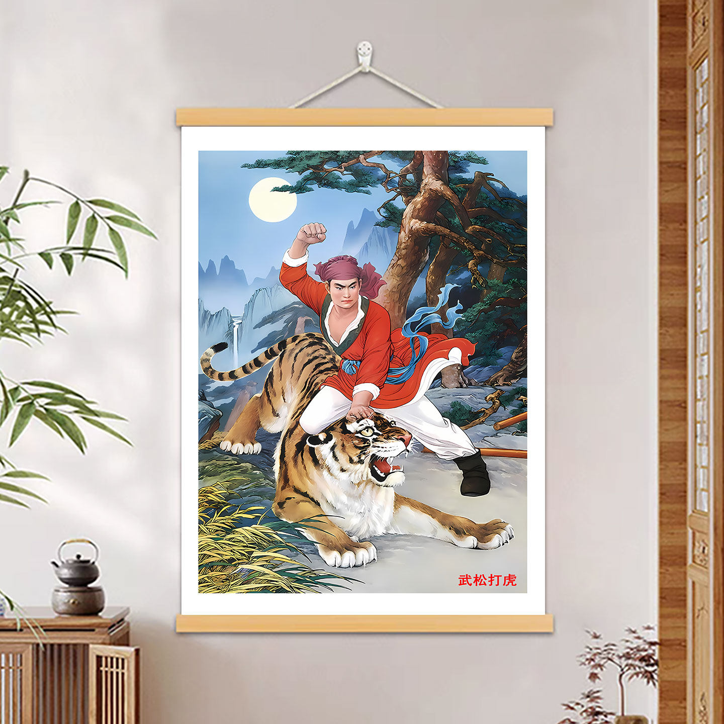 武松打虎图挂画水浒人物办公室客厅装饰风水推荐镇宅招财玄关壁画