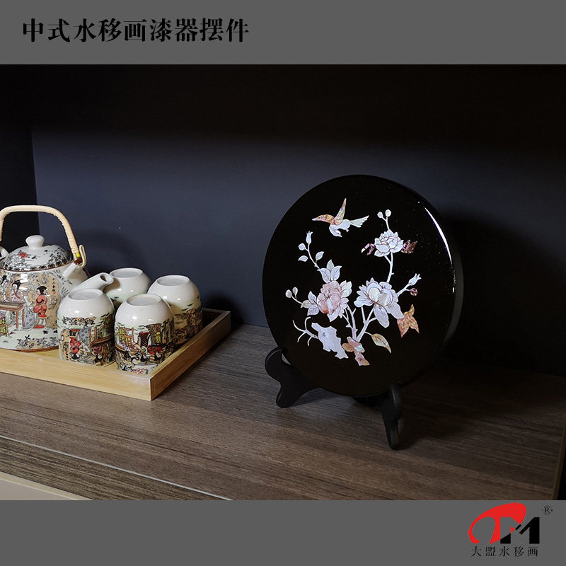 新中式风仿螺钿漆器漆盘摆件办公室家居玄关装饰风水聚财馈赠礼品