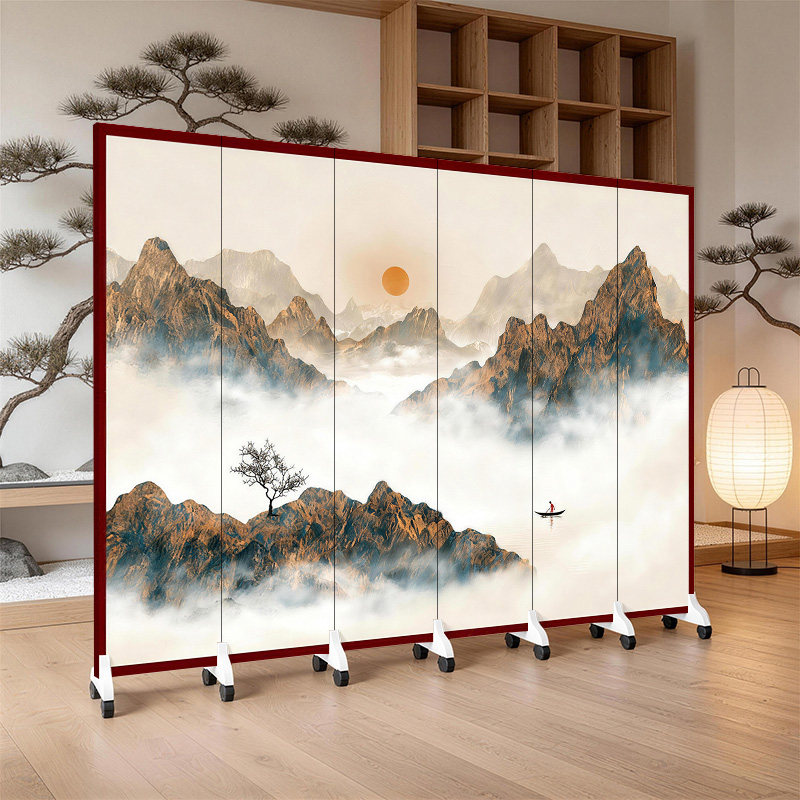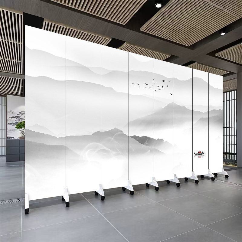 办公室屏风隔断山水画可折叠移动客厅酒店遮挡中式饭店包间带轮子