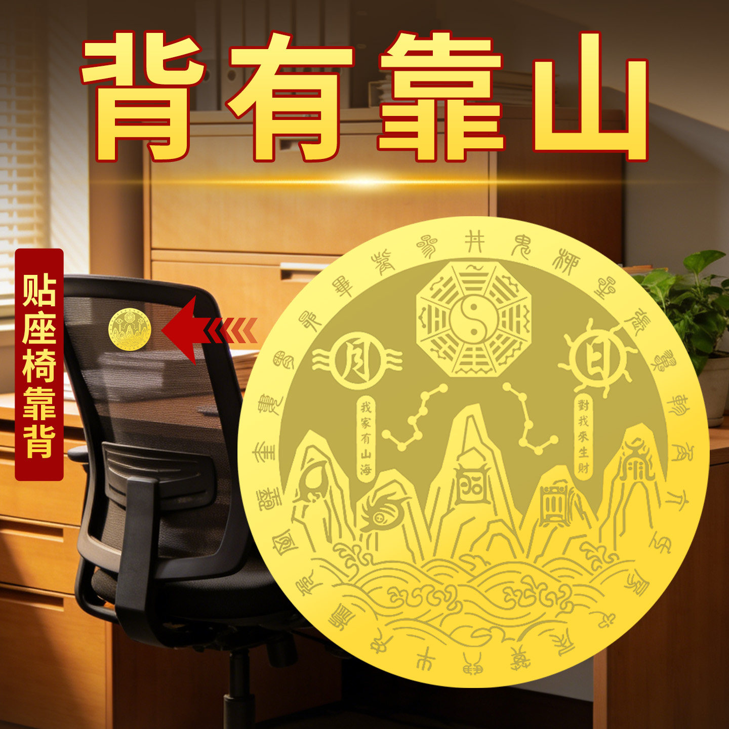 背后有靠山贴纸小摆件座椅办公室工位改造小物件风挂件山水贴画图