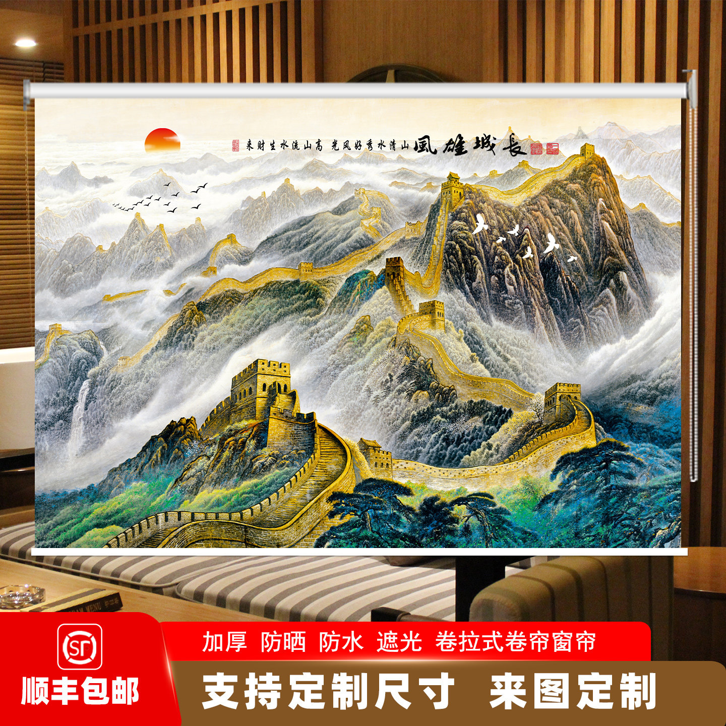 定制山水画卷帘办公室客厅卧室会议室背景挂画遮光隔热卷拉式窗帘