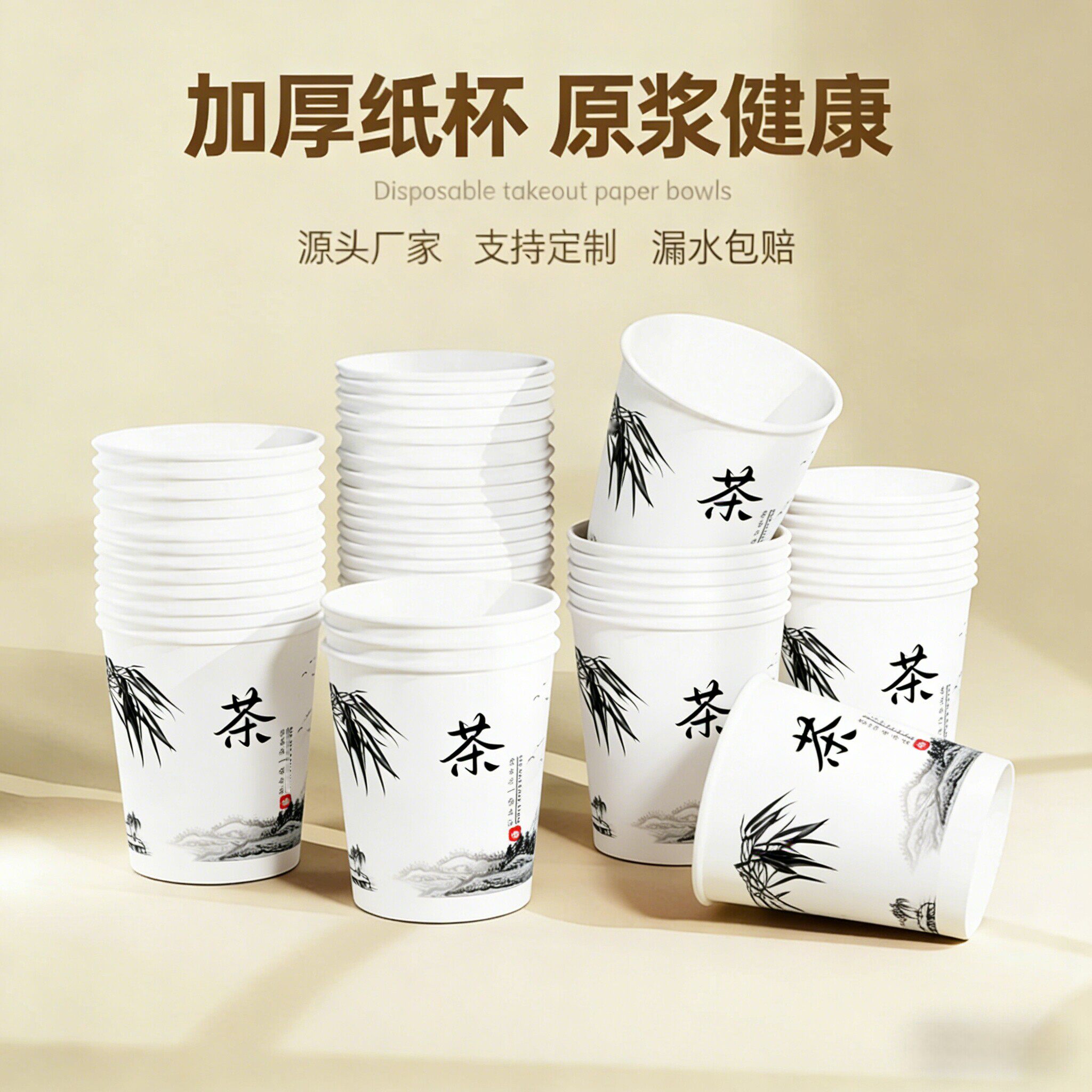 山水画茶一次性纸杯加厚整箱装家用豆浆纸杯办公室喝茶杯子咖啡杯