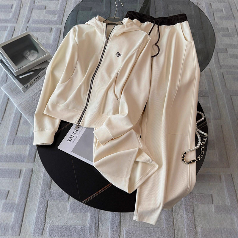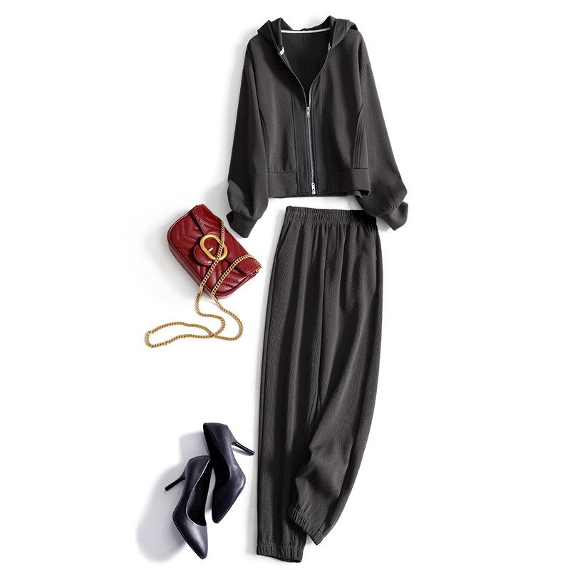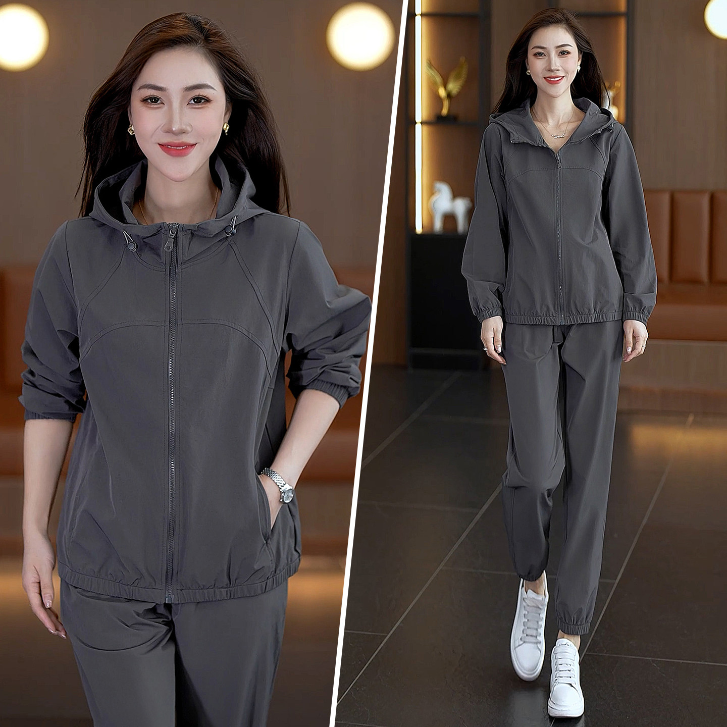 2025秋季新款高档简约运动休闲套装女士气质连帽跑步服两件套装潮