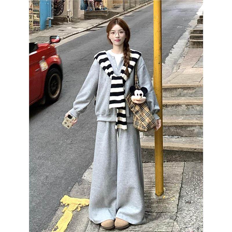 休闲运动服卫衣阔腿长裤女2025新款超火开秋季穿搭小个子两件套装