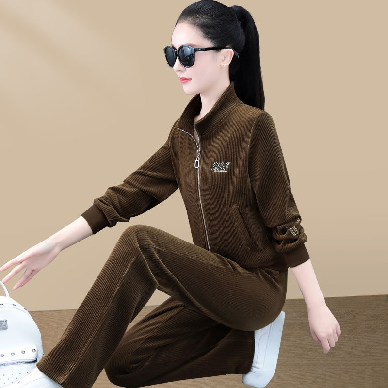 2025年新款金丝天鹅绒休闲两件套装女春秋季时尚显瘦跑步运动服潮