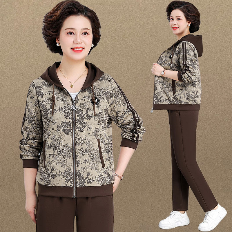 中老年女装妈妈秋季运动服休闲外套春秋奶奶洋气跑步上衣两件套装