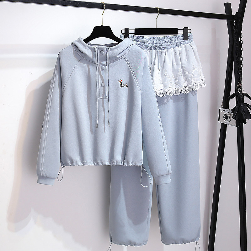 休闲运动服连帽卫衣拼接蕾丝卫裤女2025开秋季新款小个子两件套装