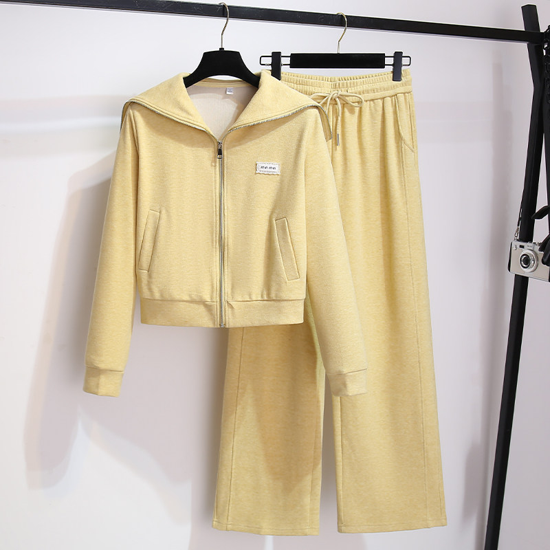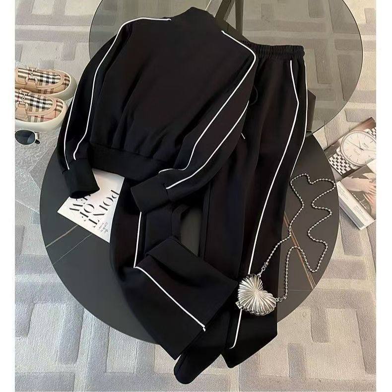 时尚休闲减龄洋气拉链卫衣阔腿裤两件套装炸街运动套装女士秋季潮