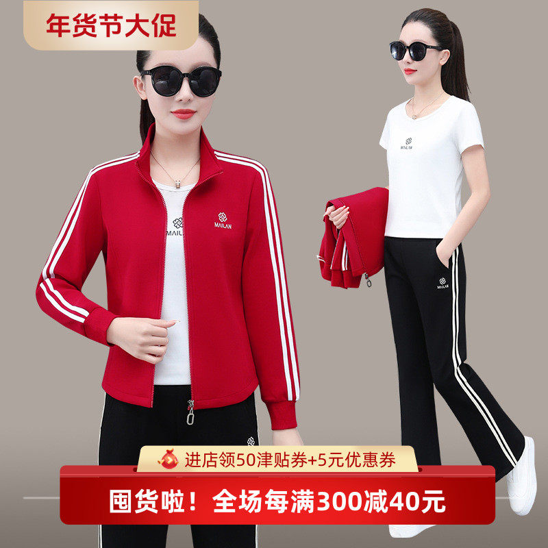 跳舞运动套装女春秋季2025新款妈妈时尚洋气宽休闲服两件或三件套