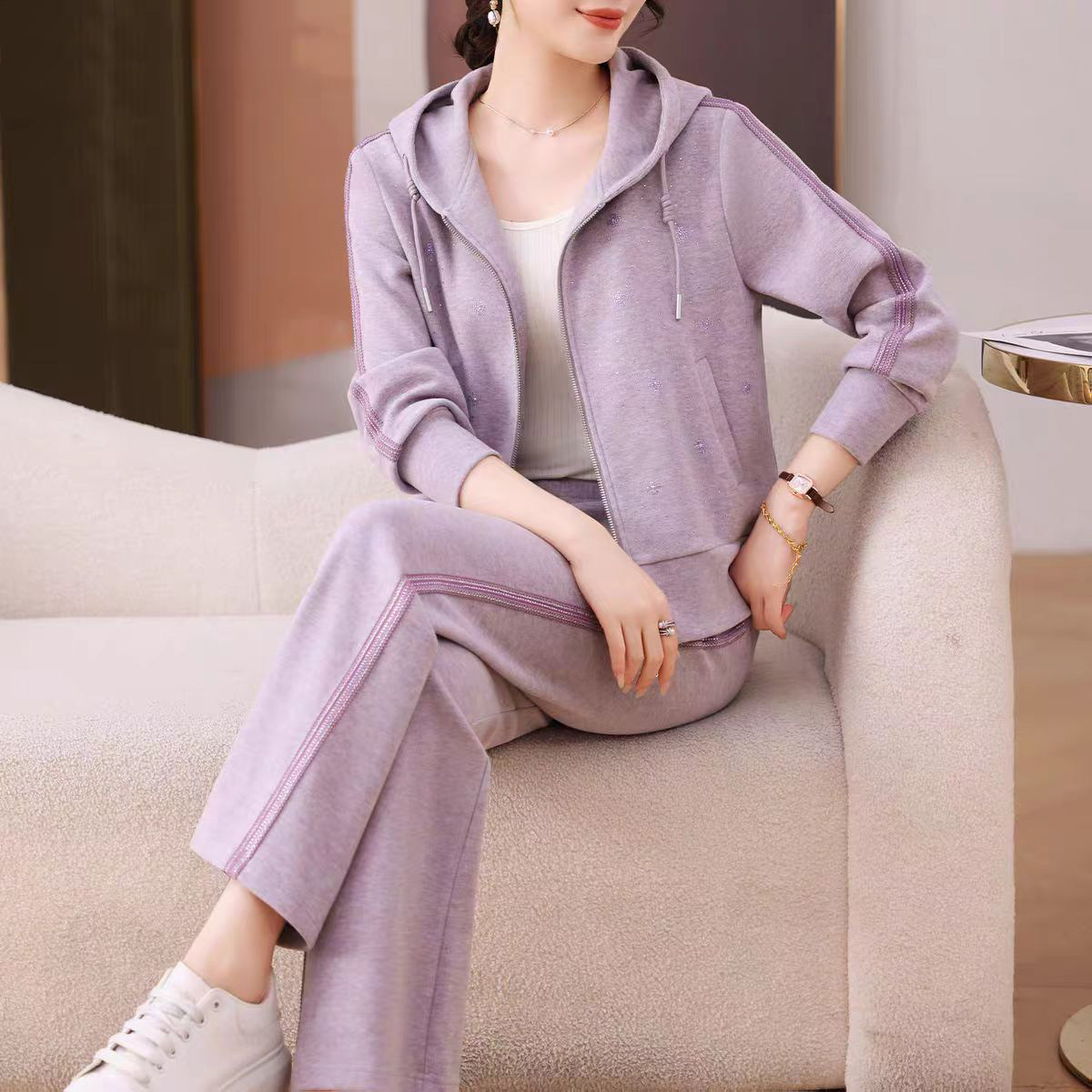 2025秋季新款欧货高端时尚休闲帽衫卫衣加厚运动服两件套装女洋气