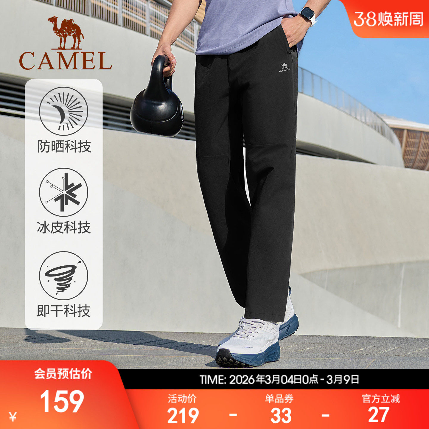 骆驼速干运动裤男士春夏直筒长裤户外防晒透气休闲裤健身跑步裤子
