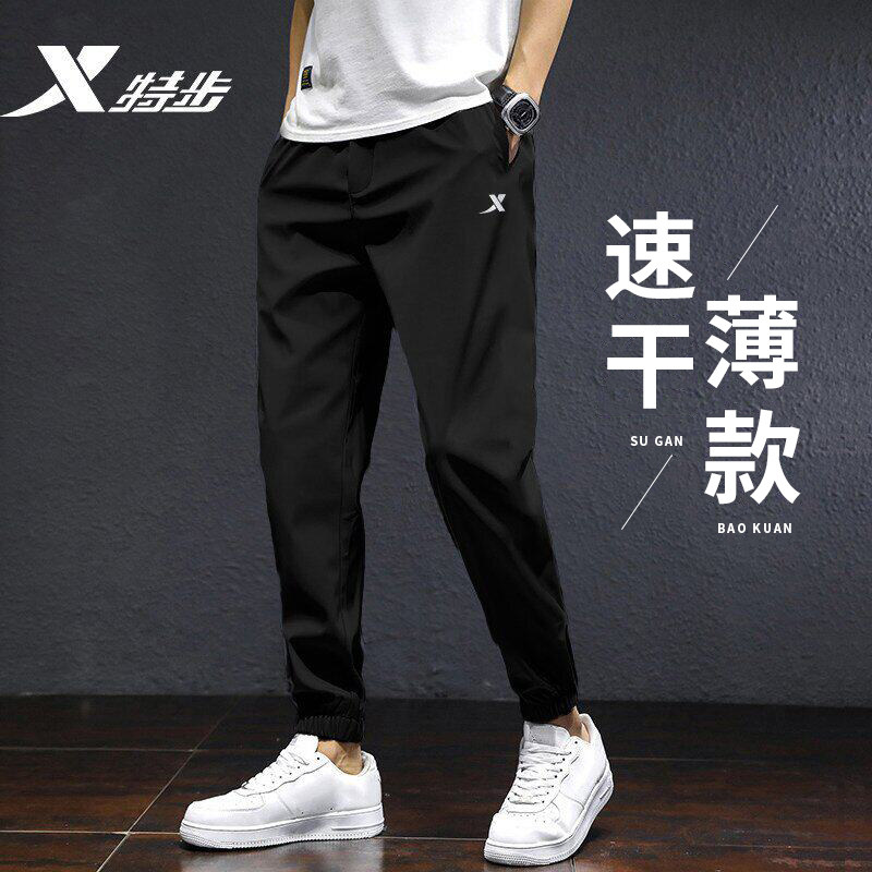 特步速干运动裤男款2026新款夏季透气宽松拉链长裤健身薄款束脚裤