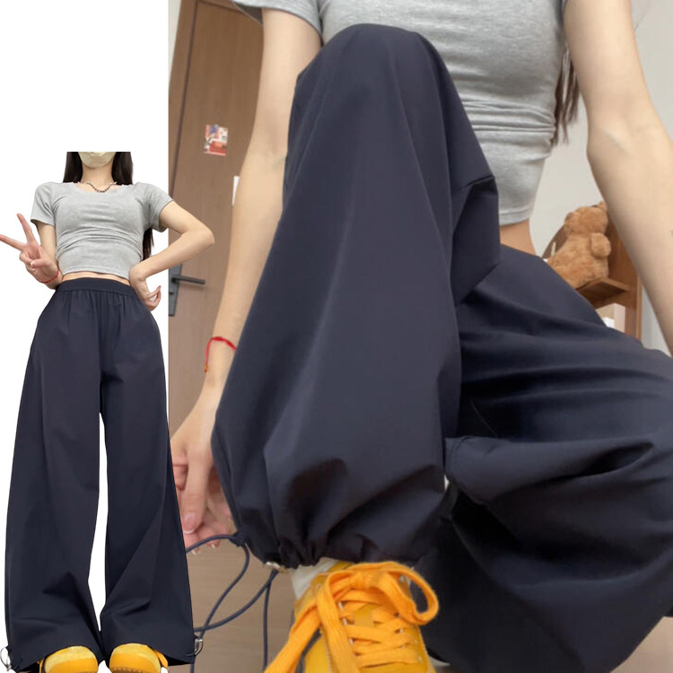 冰丝轻薄工装阔腿裤女夏季大码胖mm宽松显瘦跳舞登山速干运动裤子