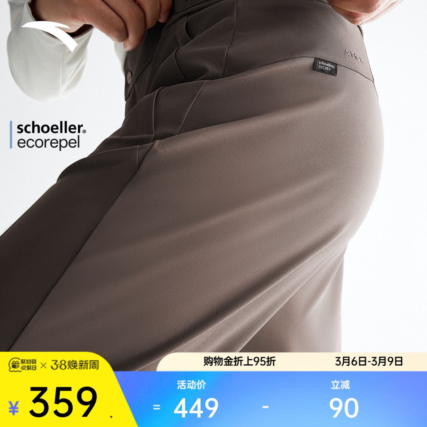 安踏大师腰型动裤丨舒乐男士春季新款直筒速干运动长裤152617503S