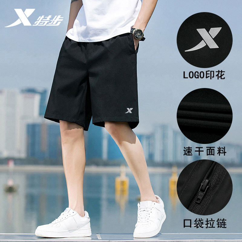 特步短裤男2026夏季新款薄款五分裤健身速干运动裤拉链跑步直筒裤