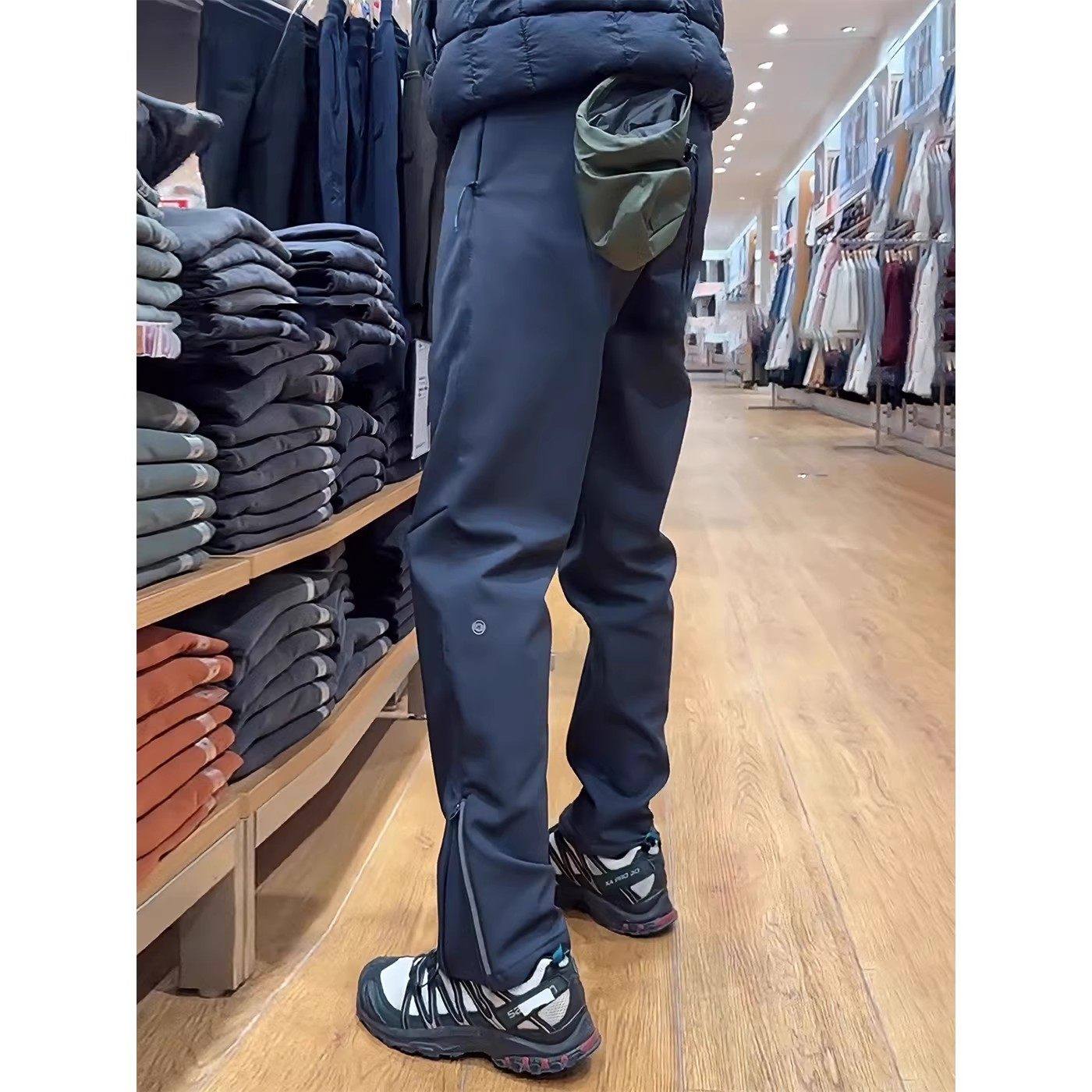 侧拉链软壳锥形冲锋裤男秋冬季户外徒步登山速干运动裤直筒休闲裤