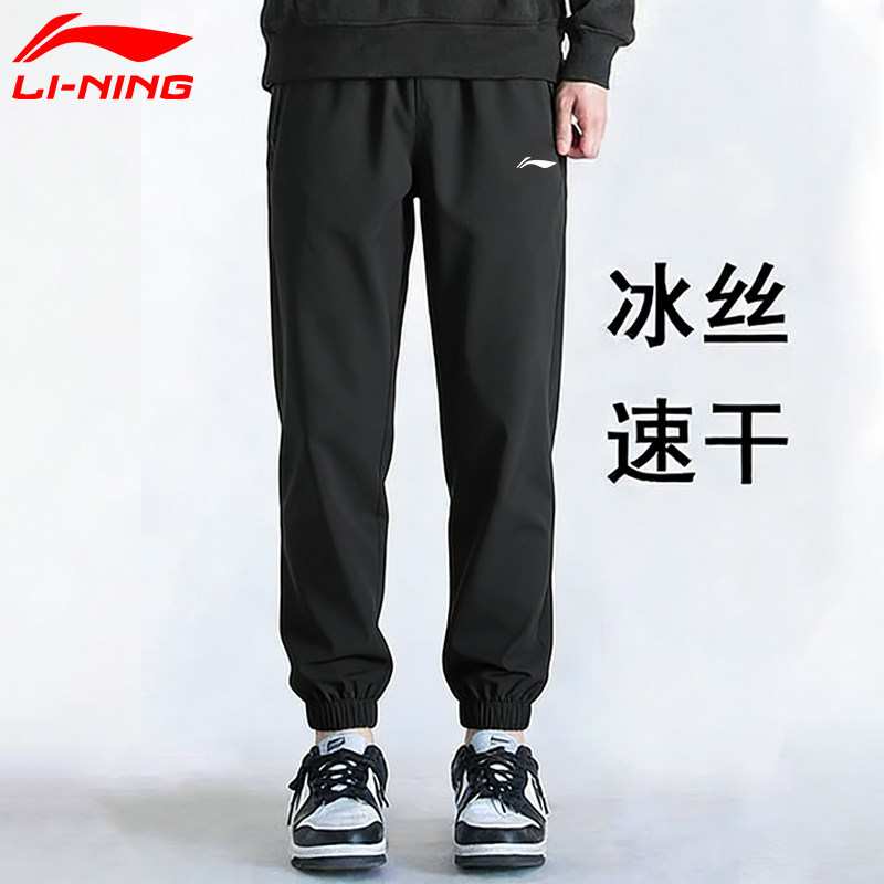 李宁速干运动裤男夏季新款冰丝速干长裤黑色拉链透气宽松休闲裤子