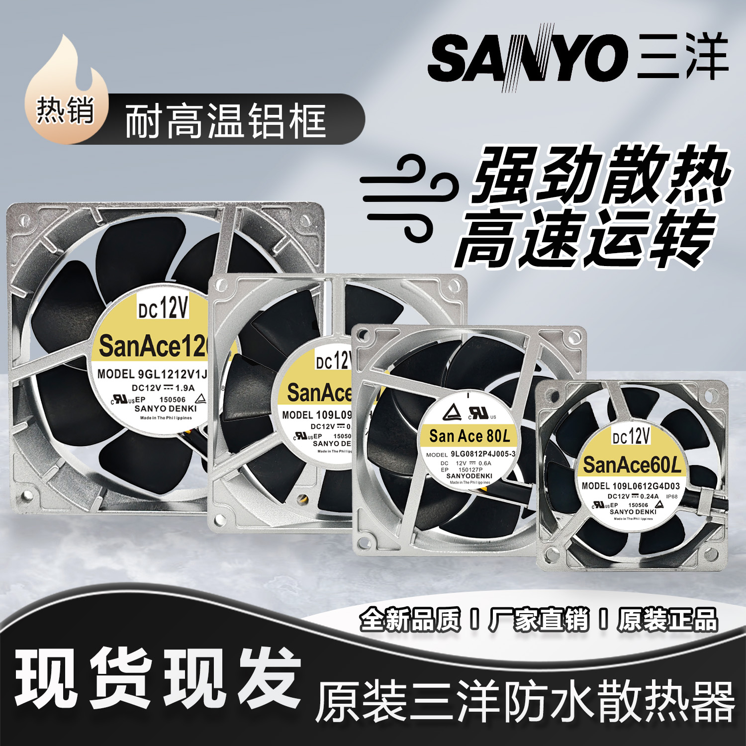 三洋4 6 8 9 12cm 12v暴力大风力改装散热风机防水耐高温金属风扇