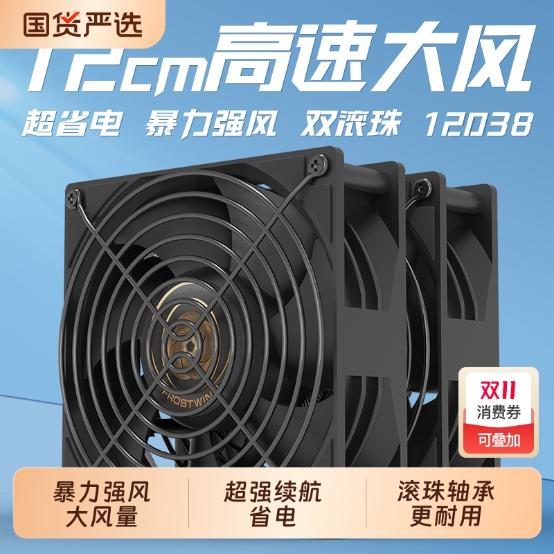 220v散热风扇大风量高速工业机柜设备机箱12cm静音12038暴力风扇