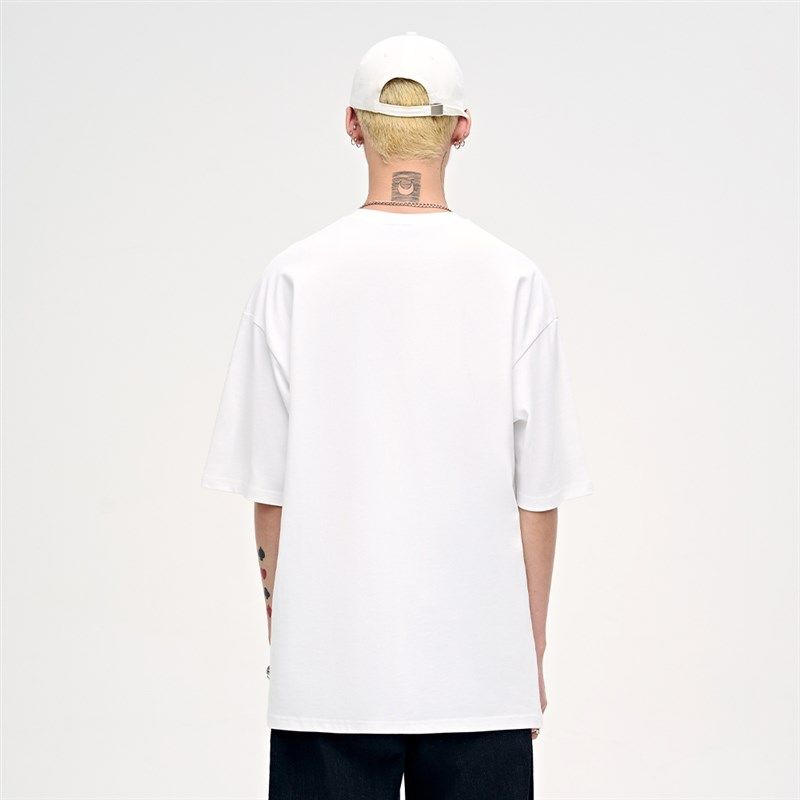 山小川卡通动漫短袖男夏季潮牌五分袖白t宽松体桖纯棉男生潮流T恤
