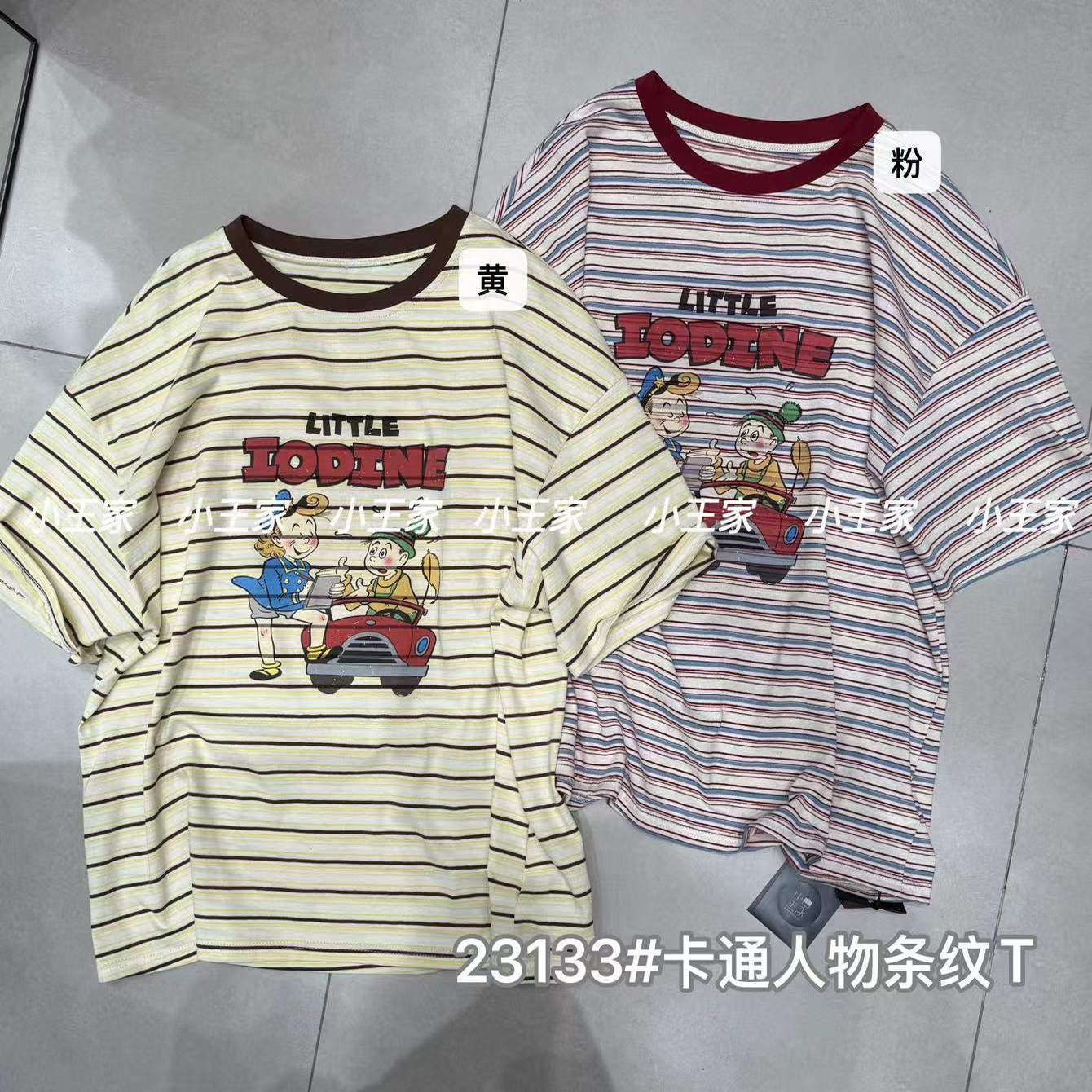 小王家23133夏季韩版宽松大码胖mm休闲慵懒风卡通动漫短袖条纹T恤
